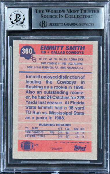 Cowboys Emmitt Smith Authentic Signed 1991 Topps #360 Card Auto 10! BAS Slabbed