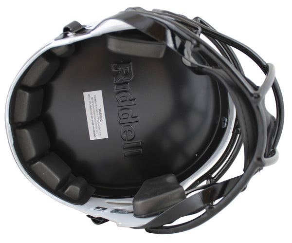 This Autographed Alternate Lunar Riddell Full Size Speed Rep Helmet has been Personally Signed by Emmitt Smith of the Dallas Cowboys. This item is 100% Authentic to include a hologram by Beckett Authentication Services. This item will come with the new Beckett Authentication hologram that has a scannable QR code rather than the traditional COA. If you would like to have a COA, you are welcome to reach out to Beckett for a printed certification once you receive your item. This is a BAS Witnessed Protection Program item which means a Beckett Authentication Service representative was present when this item was being signed. This is a stock item. We conducted an autograph signing with Emmitt Smith and we have several of these available. The one you will receive will be of equal quality to the one pictured. This item can be verified through BAS Witnessed.