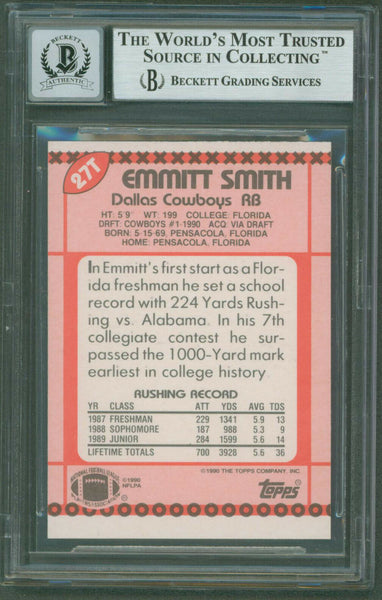 Cowboys Emmitt Smith Signed 1990 Topps Traded #27T Rookie Card Auto 10! BAS Slab