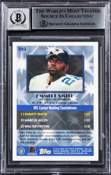 Cowboys Emmitt Smith Signed 1996 Topps Record Numbers #RN3 Card Auto 10 BAS Slab