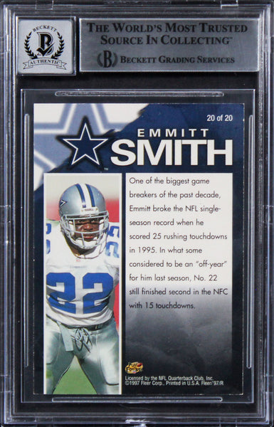 Cowboys Emmitt Smith Signed 1997 Fleer Game Breakers #20 Card Auto 10! BAS Slab