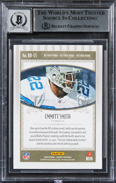 Cowboys Emmitt Smith Signed 2019 Panini Legacy #3 Card Auto 10! BAS Slabbed