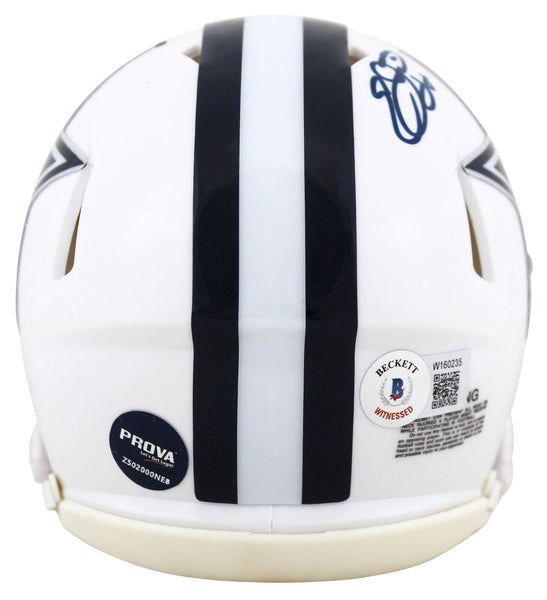 This Autographed 2022 On Field Alternate White Speed Mini Helmet has been Personally Signed by Emmitt Smith of the Dallas Cowboys. This item is 100% Authentic to include a hologram by Beckett Authentication Services. This item may come with the new Beckett Authentication hologram that has a scannable QR code rather than the traditional COA. If you would like to have a COA, you are welcome to reach out to Beckett for a printed certification once you receive your item. This is a BAS Witnessed Protection Program item which means a Beckett Authentication Service representative was present when this item was being signed. We conducted an autograph signing with Emmitt Smith where multiples of the same item were signed. While the photographs are representative of this item, the size, placement and strength of the signature may vary. Each item is hand signed, therefore, each autograph is unique. This item can be verified through BAS Witnessed.