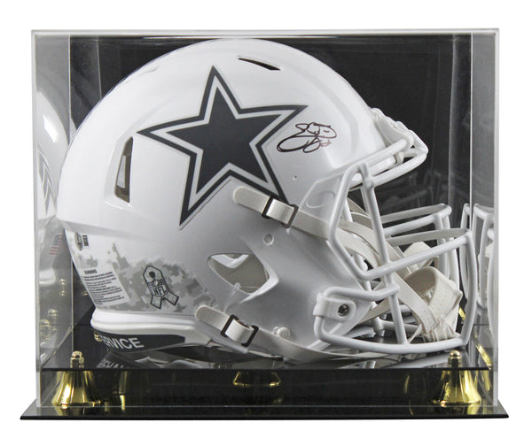 This Autographed Alternate 2024 Salute To Service III Riddell Full Size Speed Proline Helmet W/ Uv Mirrored Back Acrylic Display Case has been Personally Signed by Emmitt Smith of the Dallas Cowboys. This item is 100% Authentic to include a hologram by Beckett Authentication Services. This item will come with an affixed Beckett Authentication Services (BAS) authentication sticker, which includes a scannable QR code to verify authenticity. Please note that Beckett no longer provides serial-numbered COA cards, and the attached BAS sticker will serve as the complete authentication for this item. This is a BAS Witnessed Protection Program item which means a Beckett Authentication Service representative was present when this item was being signed. We conducted an autograph signing with Emmitt Smith where multiples of the same item were signed. While the photographs are representative of this item, the size, placement and strength of the signature may vary. Each item is hand signed, therefore, each autograph is unique. This item can be verified through BAS Witnessed.