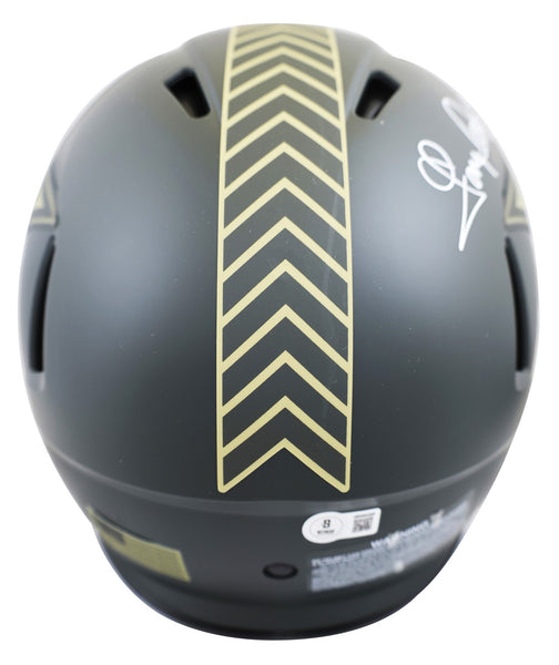 This Autographed Authentic Full Size Speed Proline Helmet with the inscription of "HOF 94" has been Personally Signed by Tony Dorsett of the Dallas Cowboys. This item is 100% Authentic to include a hologram by Beckett Authentication Services. This item will come with an affixed Beckett Authentication Services (BAS) authentication sticker, which includes a scannable QR code to verify authenticity. Please note that Beckett no longer provides serial-numbered COA cards, and the attached BAS sticker will serve as the complete authentication for this item. This is a BAS Witnessed Protection Program item which means a Beckett Authentication Service representative was present when this item was being signed. We conducted an autograph signing with Tony Dorsett where multiples of the same item were signed. While the photographs are representative of this item, the size, placement and strength of the signature may vary. Each item is hand signed, therefore, each autograph is unique. This item can be verified through BAS Witnessed.