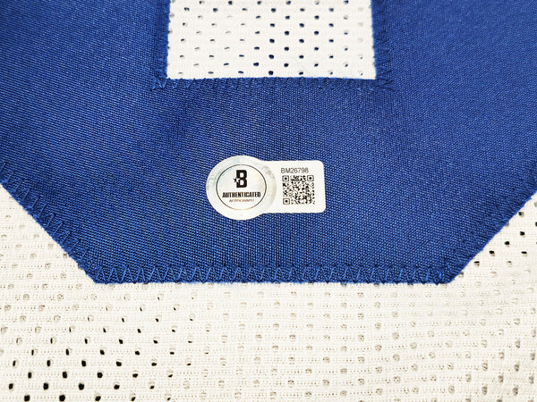 This is a White Jersey that has been hand signed by Darren Woodson. This is a custom jersey with no name brand. The approximate size is XL. It has nice sewn in name and numbers. This item has been certified authentic by Beckett Authentication (BAS) and comes with their tamper-proof QR Code sticker that can be verified on beckett-authentication.com.