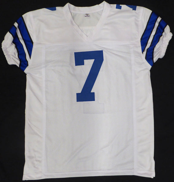 This is a White Jersey that has been hand signed by Trevon Diggs. This is a custom jersey with no name brand. The approximate size is XL. It has nice sewn in name and numbers. Note: The signature goes over the authentication sticker. This item has been certified authentic by PSA/DNA and comes with their tamper-proof hologram and matching certificate of authenticity.