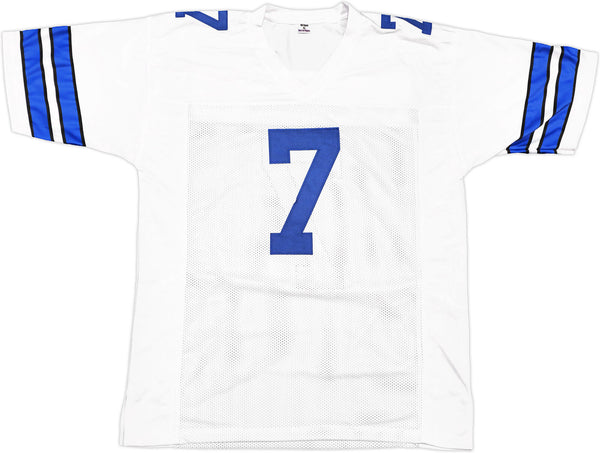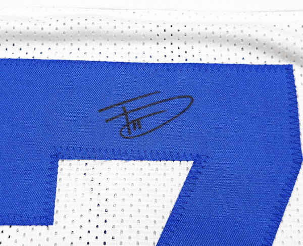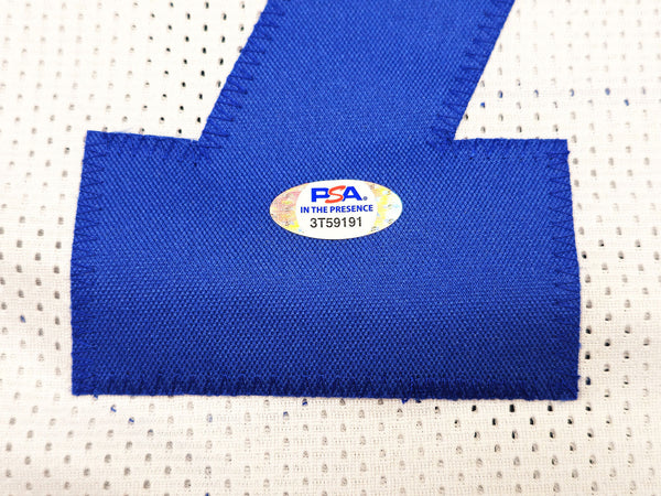 This is a White Jersey that has been hand signed by Trevon Diggs. This is a custom jersey with no name brand. The approximate size is XL. It has nice sewn in name and numbers. This item has been witnessed and certified authentic by PSA/DNA and comes with their tamper-proof sticker.