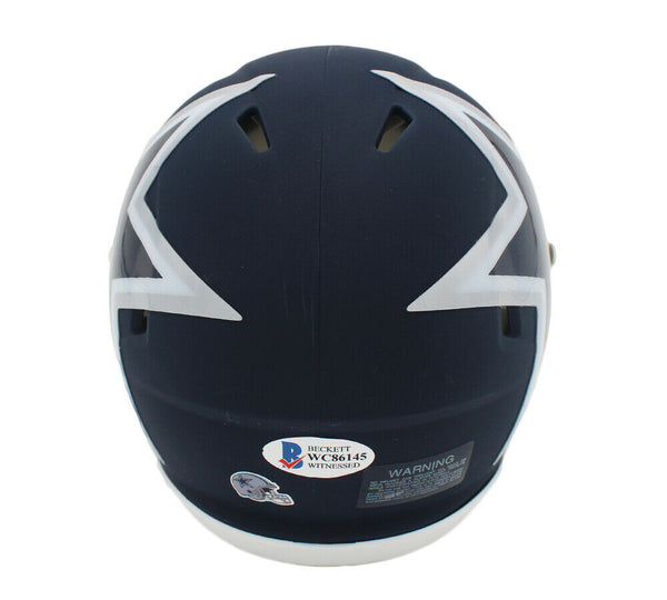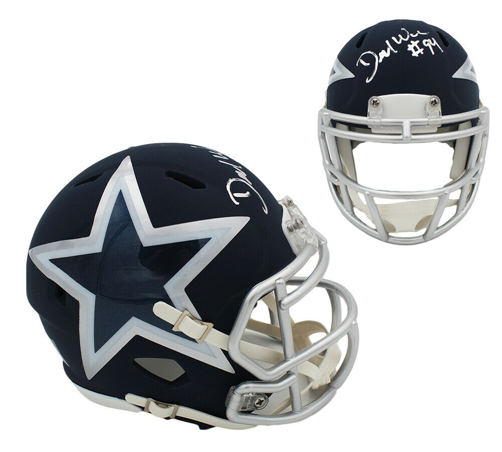 A Dallas Cowboys Speed AMP NFL Mini Helmet hand signed by DeMarcus Ware. The item and signature are in excellent condition. DeMarcus played 9 seasons with the Dallas Cowboys and 3 seasons with the Denver Broncos. He is a Super Bowl Champion, 9x Pro Bowl & 2x Butkus Award winner. AUTHENTICATION: The item is accompanied by a Beckett Certificate of Authenticity - Beckett Serial Numbered and Databased Hologram - Picture of DeMarcus from the Signing