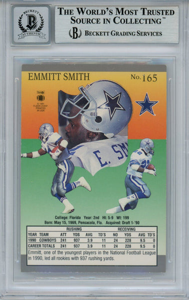 Emmitt Smith Autographed 1991 Ultra #165 Trading Card Beckett 10 Slab 35089 The number in the listing title is just an inventory sku for our records and is not the authentication number. The item pictured is a stock photo unless otherwise noted. This is a football trading card that was personally autographed by Emmitt Smith. This has been professionally slabbed by Beckett Authentication Services (BAS) and includes a certificate of authenticity from Denver Autographs.