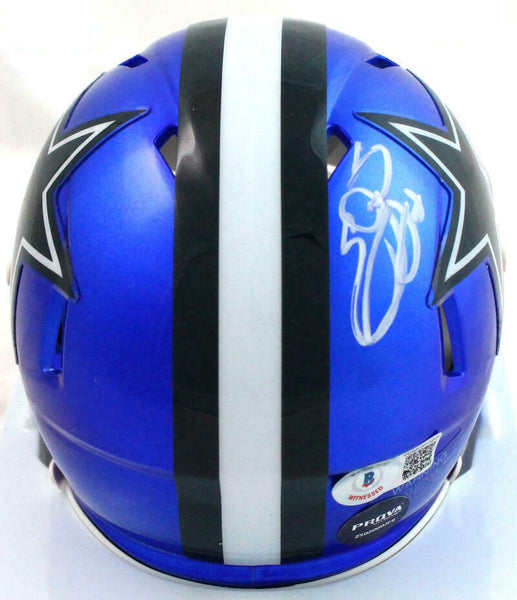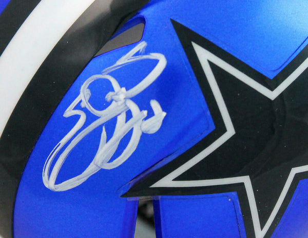 Emmitt Smith Autographed Cowboys Flash Speed Mini Helmet-Beckett W Hologram *White This is an Emmitt Smith of the Dallas Cowboys hand autographed Riddell Football Flash Speed mini helmet. This item has a Beckett Witnessed Authentication, which comes with a numbered sticker hologram and a generic Beckett Certificate of Authenticity. You can view this item on the Beckett Authentication website. It was signed either at a public autograph appearance or a private signing. This is a stock photo of the item. Although you may not receive this exact item, the item you receive is virtually identical, brand new, and in great shape.