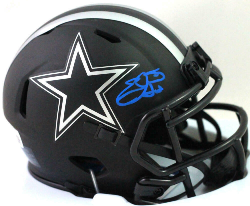 Emmitt Smith Autographed Dallas Cowboys Eclipse Speed Mini Helmet- Beckett W Auth *Blue FRONT This is a hand autograph of Emmitt Smith of the Dallas Cowboys on a Riddell Football Eclipse Speed Mini Helmet. This item has a Beckett Witnessed Authentication, which comes with a numbered and a matching Beckett Certificate of Authenticity. You can view this item on the Beckett Authentication website. It was signed either at a public autograph appearance or a private signing. This is a stock photo of the item. Although you may not receive this exact item, the item you receive is virtually identical and brand new in great shape.