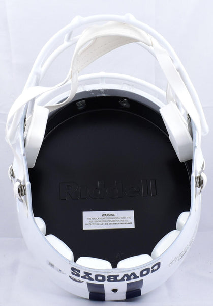 Emmitt Smith Autographed F/S Dallas Cowboys ALT 22 Speed Helmet-Beckett W Hologram *Black This is a Hand Autograph of Emmitt Smith of the Dallas Cowboys on a Riddell Football Full Size ALT 2022 Speed Replica Helmet. This item has a Beckett Witness Authentication, which comes with a Beckett numbered hologram and a QR code for verification. You can view this item on the Beckett website, it shows when and where the item was signed. It was signed either at a public autograph appearance or a private signing. This is a stock photo of the item. Although you may not receive this exact item, the item you receive is virtually identical and brand new in great shape.