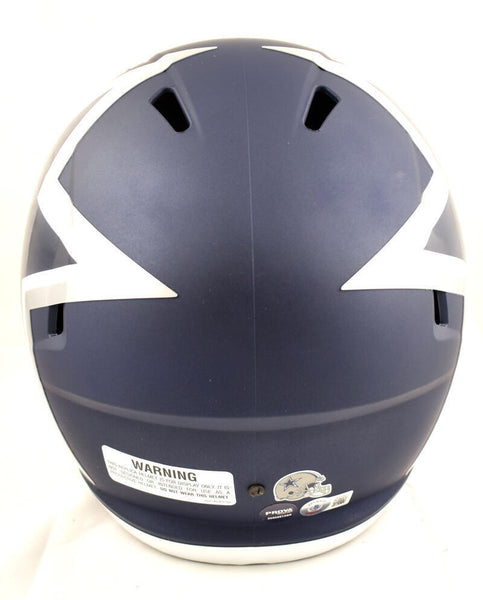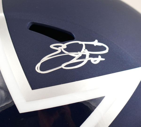 Emmitt Smith Autographed F/S Dallas Cowboys AMP Speed Helmet- Beckett W Hologram *Silver This is a hand autograph of Emmitt Smith of the Dallas Cowboys on a Riddell Football Full Size AMP Speed Replica Helmet. This item has a Beckett Witnessed Authentication, which comes with a Beckett numbered hologram and a QR code for verification. You can view this item on the Beckett Authentication website, it shows when and where the item was signed. It was signed either at a public autograph appearance or a private signing. This is a stock photo of the item. Although you may not receive this exact item, the item you receive is virtually identical and brand new in great shape.