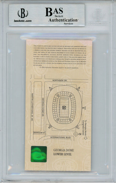 Emmitt Smith Autographed Super Bowl XXVIII Ticket Stub MVP Beckett Slab 38693 The number in the listing title is just an inventory sku for our records and is not the authentication number. The item pictured is a stock photo unless otherwise noted. This is a Super Bowl XXVIII ticket stub that was personally autographed by Emmitt Smith with SB MVP inscription. This has been professionally slabbed by Beckett Authentication Services (BAS) and includes a certificate of authenticity from Denver Autographs.