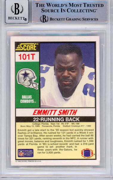 Emmitt Smith Signed 1990 Score Supplemental #101 (Grade 10) Slabbed BAS 39937 The number in the listing title is just an inventory sku for our records and is not the authentication number. The item pictured is a stock photo unless otherwise noted. This is a Slab Ten Trading Card that was personally autographed by Emmitt Smith. Includes a certificate of authenticity from Beckett Authentication Services (BAS) and Denver Autographs.