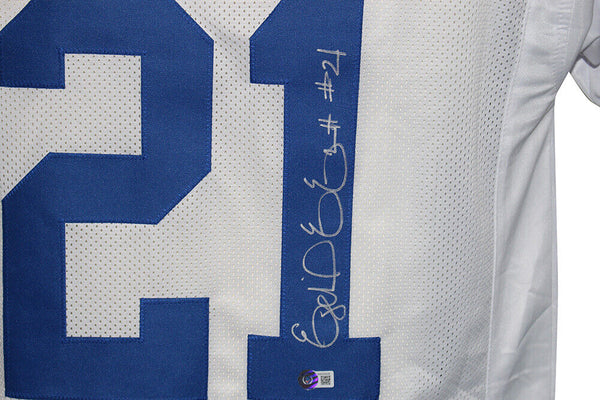 Ezekiel Elliott Autographed/Signed Pro Style White XL Jersey Beckett 37016 The number in the listing title is just an inventory sku for our records and is not the authentication number. The item pictured is a stock photo unless otherwise noted. This is a custom pro style white XL jersey with sewn on name and numbers that was personally autographed by Ezekiel Elliott. Includes a certificate of authenticity from Beckett Authentication Services (BAS) and Denver Autographs.
