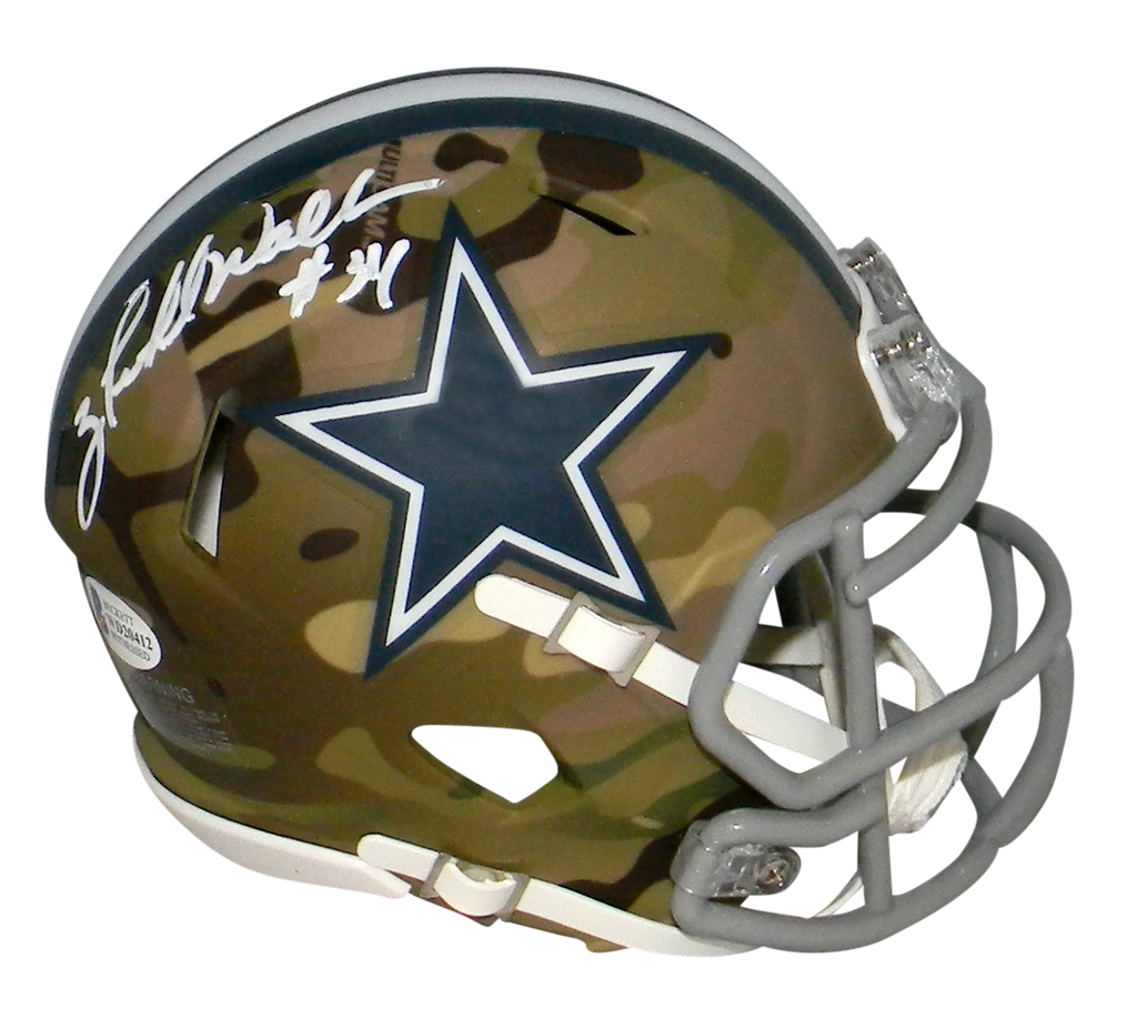 Herschel Walker, former Pro Bowl running back for the Dallas Cowboys, has hand signed this Cowboys Riddell Speed Camo mini helmet at a private signing. This item comes with a certificate of authenticity (COA) from Beckett Authentication Services and was signed in the presence of one of their representatives. You will receive a serial-numbered COA along with a matching serial-numbered sticker on the helmet. The authenticity can be verified online by entering the serial number.Item pictured may not be the exact item you will receive. It will be similar quality, and we guarantee your satisfaction.