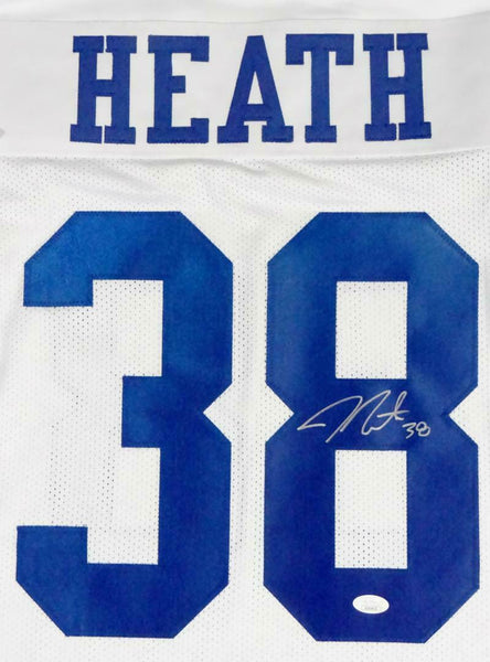 Jeff Heath Autographed White Pro Style Jersey - JSA Auth *8 THIS IS NOT AN NFL JERSEY. THIS HAS NO TAGS, NO LOGOS, NO EMBLEMS. This is a hand autograph of Jeff Heath on a Custom Made (non name brand) Authentic Style Jersey with stitched letters and numbers. This item has a James Spence Authentication, which comes with a numbered sticker and a matching Certificate of Authenticity. You can view this item on the SpenceLOA website. It was signed either at a public autograph appearance or a private signing. This is a stock photo of the item. Although you may not receive this exact item, the item you receive is virtually identical and brand new in great shape. Jersey size is XL.