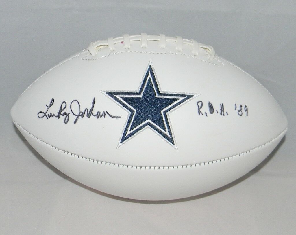 Lee Roy Jordan, former All-Pro linebacker for the Dallas Cowboys, has hand signed this Cowboys white panel logo football at a private signing. This item comes with a certificate of authenticity (COA) from Signature Sports Marketing, one of the leaders in the industry. You will receive a paper COA along with matching serial-numbered holograms.Item pictured may not be the exact item you will receive. It will be similar quality, and we guarantee your satisfaction.
