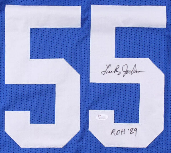 Custom on-field style jersey. Everything is sewn on, size XL. Hand-signed and inscribed in black felt-tip pen by Lee Roy Jordan.The lot / autograph(s) includes an official James Spence Authentication (JSA) hologram and matching COA for authenticity purposes. The signing of this item was witnessed by JSA.Authentication: JSA COA All Items are brand new unless otherwise stated. On all signed jerseys up for auction stock images are used in these listings. ALMOST ALL OUR SIGNED JERSEYS ARE ADULT XL unless otherwise noted (It's the preferred size for autograph collectors for display purposes) The exact item you will receive will be the Same player as the one pictured, but may have the signature in different spots, be signed in a different color paint pen, and have different inscriptions than the photo shown. WE ARE NOT A WHOLESALER; WE TRY TO OFFER LOW PRICED SIGNED JERSEYS TO OUR CUSTOMERS SO EVERYONE GETS A FAIR CHANCE AT LOW PRICES ON QUALITY ITEMS. If you're buying multiple items, please don't pay until you purchase all your auction items for that week (Thursday thru Sunday) We'll send you an invoice when all our weekly auctions are over on either Saturday or Sunday evening at 10:30 pm depending on how many items we have listed that week. We will adjust your shipping at this point. We use a Pack & Ship to send out our Auction items and they charge us $13. for the 1st item & $3. for each additional item (with a max of $25 for up to 70lbs.) Thank you & Happy BiddingALL INTERNATIONAL SHIPPING ON THESE ITEMS IS DONE THROUGH THE eBAY GLOBAL SHIPPING PROGRAM. PLEASE BE AWARE OF THESE COSTS BEFORE BIDDING.