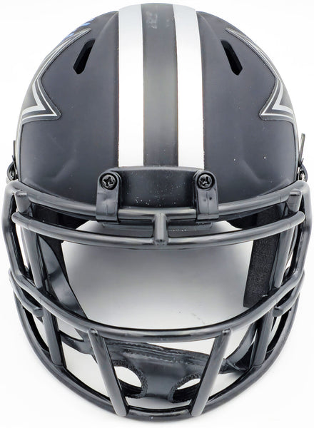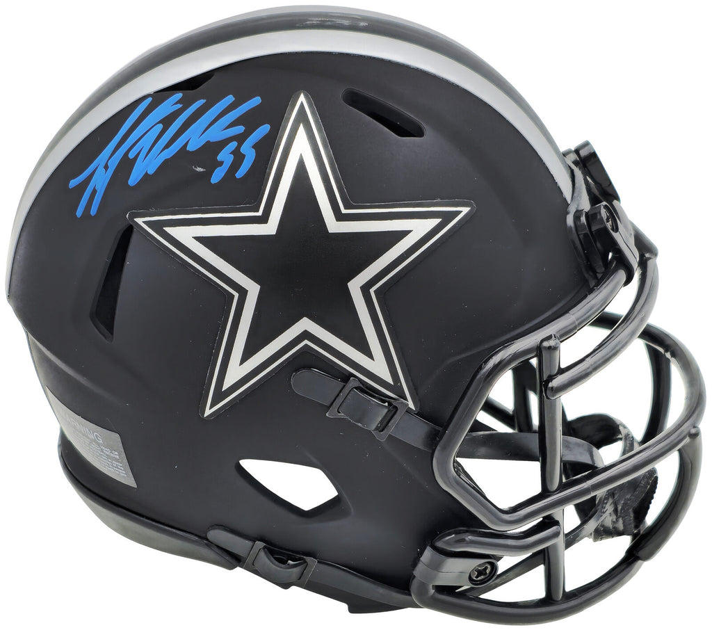 This is a Dallas Cowboys Eclipse Black Speed Mini Helmet that has been hand signed by Leighton Vander Esch. The Eclipse helmets are delicate and may have some marks or scratches on them. This item has been certified authentic by Fanatics and comes with their tamper-proof sticker.