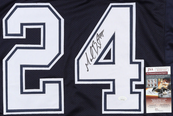 Custom on-field style jersey. Everything is sewn on, size XL. Hand-signed by Marion Barber III.The lot / autograph(s) includes an official James Spence Authentication (JSA) hologram and matching COA for authenticity purposes. The signing of this item was witnessed by JSA.Authentication: JSA COACustom on-field style jerseys are a more affordable option for autograph seekers. These jerseys do not have any brand name or tags and are made in the Philippines. They feature stitched on names and numbers and are made to look very similar to the on-field jerseys that the players wear. These custom jerseys are very commonly used in the memorabilia industry.