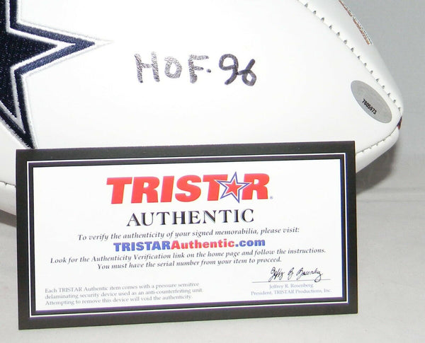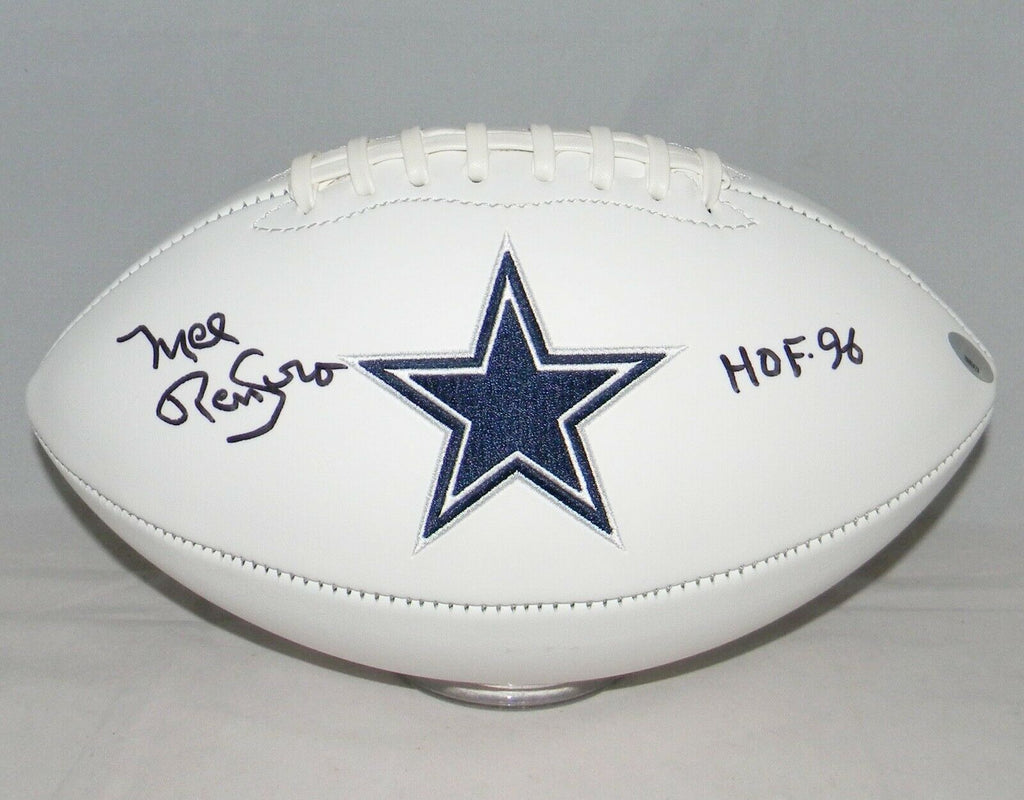 Mel Renfro, former Hall of Fame cornerback for the Dallas Cowboys, has hand signed this Cowboys white panel logo football at a private signing. This item comes with a serial-numbered hologram from Tristar, one of the leaders in the industry. The authenticity can be verified online by entering the serial number. A Tristar information card is also included.Item pictured may not be the exact item you will receive. It will be similar quality, and we guarantee your satisfaction.
