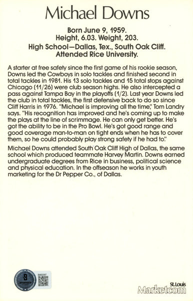 The number in the listing title is just an inventory sku for our records and is not the authentication number. This is the exact item that you will receive so please see pictures for condition. This is a mini poster measuring 8.5" x 5.5" that was personally autographed by Michael Downs. Includes a certificate of authenticity from Beckett Authentication Services (BAS) and Denver Autographs.