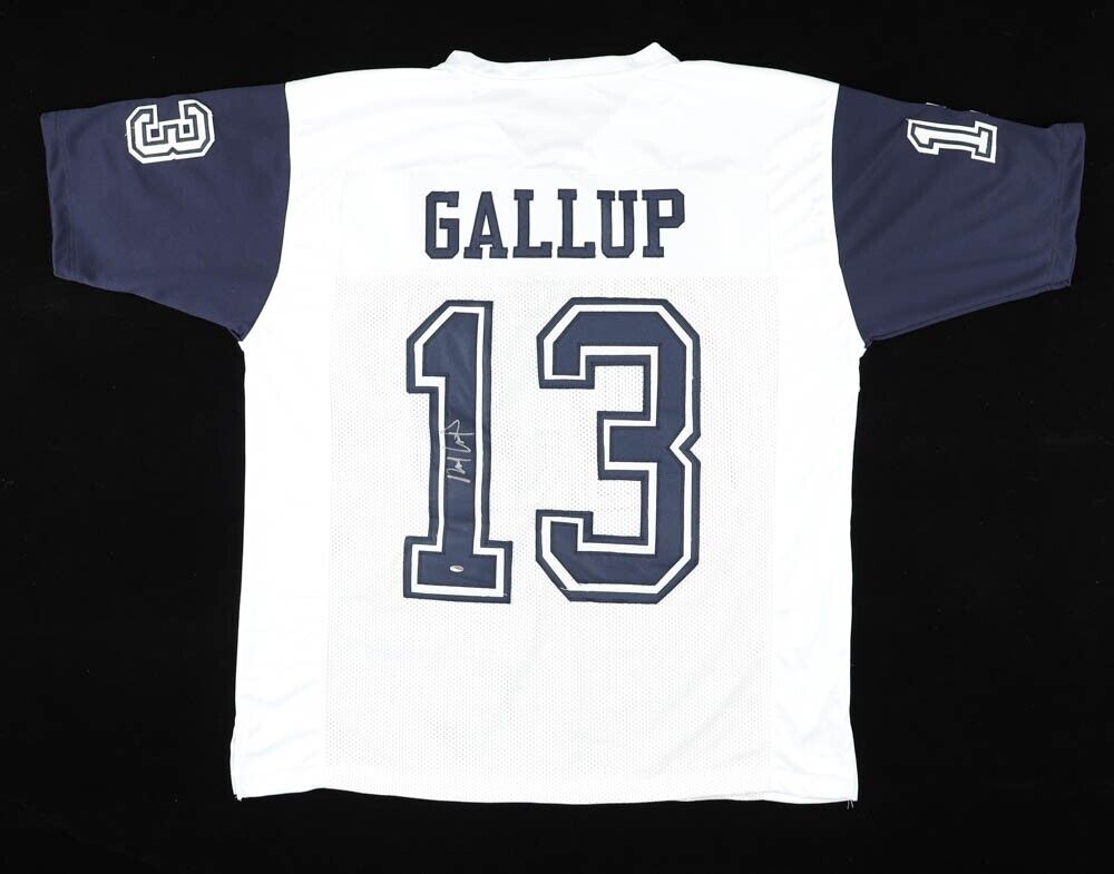 Custom on-field style jersey. Everything is sewn on, size XL. Hand-signed by Michael Gallup.The lot / autograph(s) includes an official OKAuthentics player hologram for authenticity purposes.Authentication: OKAuthentics Hologram