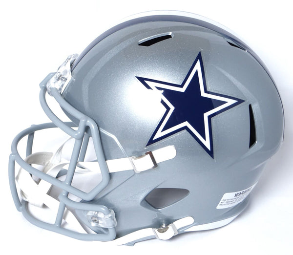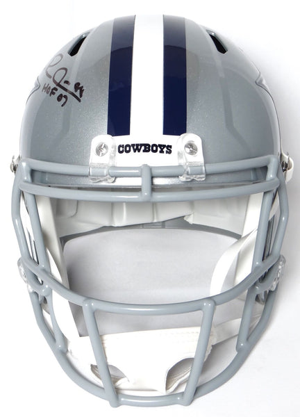 This is a Michael Irvin of the Dallas Cowboys hand autographed Riddell football full size Speed Replica helmet. Inscribed HOF. This item has a Beckett Witnessed Authentication, which comes with a numbered sticker hologram and a QR code for verification. You can view this item on the Beckett Authentication website, and it shows when and where the item was signed. It was signed either at a public autograph appearance or a private signing. This is a stock photo of the item. Although you may not receive this exact item, the item you receive is virtually identical, brand new, and in great shape. This is a Michael Irvin of the Dallas Cowboys hand autographed Riddell football full size Speed Replica helmet. Inscribed HOF. This item has a Beckett Witnessed Authentication, which comes with a numbered sticker hologram and a QR code for verification. You can view this item on the Beckett Authentication website, and it shows when and where the item was signed. It was signed either at a public autograph appearance or a private signing. This is a stock photo of the item. Although you may not receive this exact item, the item you receive is virtually identical, brand new, and in great shape.