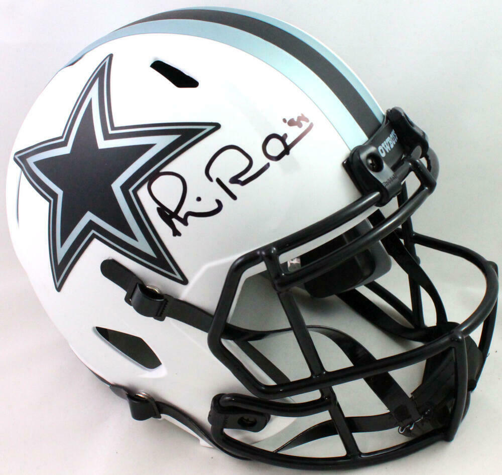 Michael Irvin Autographed Dallas Cowboys Lunar Speed F/S Helmet- Beckett W *Blk This is a Michael Irvin of the Dallas Cowboys hand autographed Riddell football Lunar Speed full size replica helmet. This item has a Beckett Witnessed Authentication, which comes with a numbered and a matching Beckett Certificate of Authenticity. You can view this item on the Beckett Authentication website and it shows when and where the item was signed. It was signed either at a public autograph appearance or a private signing. This is a stock photo of the item. Although you may not receive this exact item, the item you receive is virtually identical, brand new, and in great shape.