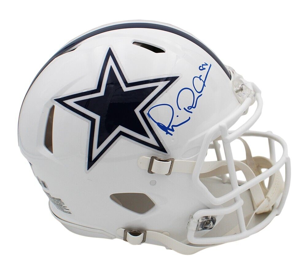 A Dallas Cowboys Speed Authentic Alternate White NFL Helmet hand signed by Michael Irvin. The item and signatures are in excellent condition. Michael played college football at the University of Miami, and then for the Dallas Cowboys. He is a 3x SB Champ & 5x Pro Bowler. AUTHENTICATION: The item is accompanied by a Beckett Serial Numbered and Databased Hologram.