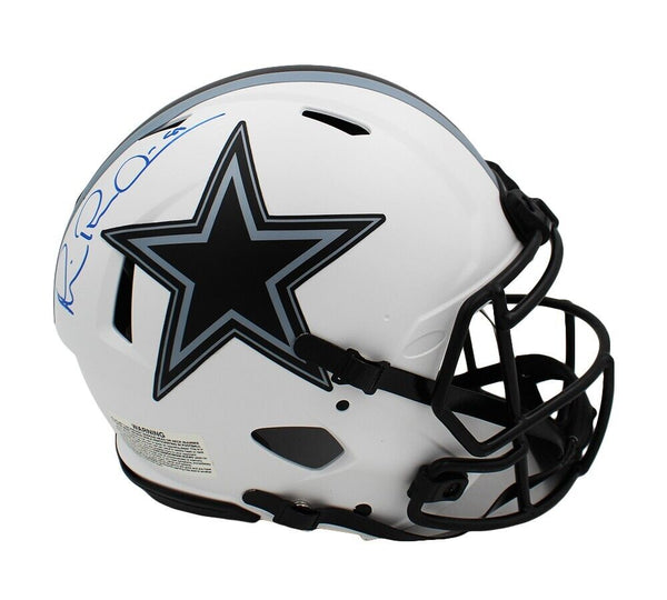 A Dallas Cowboys Speed Authentic Lunar NFL Helmet hand signed by Michael Irvin. The item and signatures are in excellent condition. Michael played college football at the University of Miami, and then for the Dallas Cowboys. He is a 3x SB Champ & 5x Pro Bowler. AUTHENTICATION: The item is accompanied by a Beckett Serial Numbered and Databased Hologram.