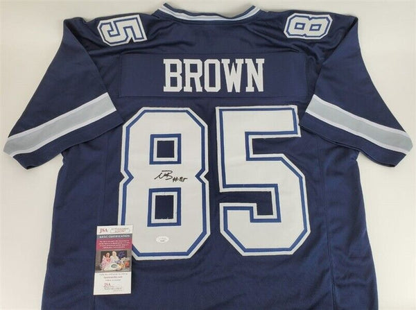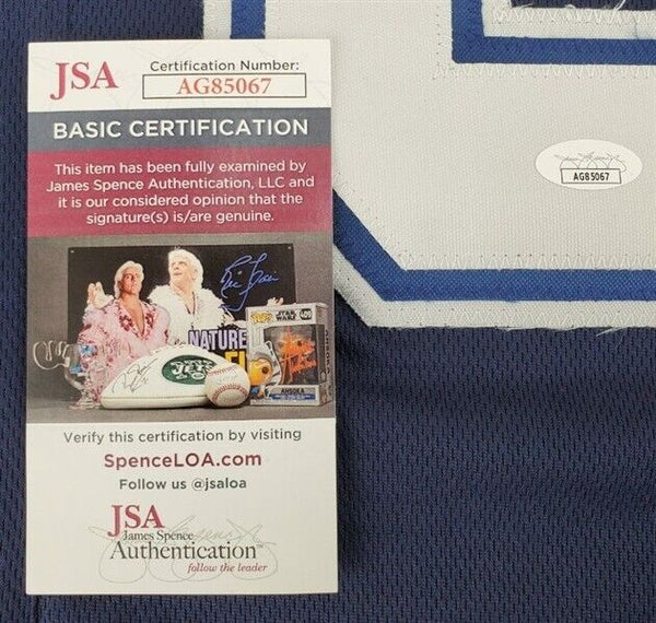This autographed jersey has been personally hand-signed by Noah Brown of the Dallas Cowboys. This autograph is certified by James Spence Authentication (JSA). It comes with the numbered hologram and matching Certificate of Authenticity.Custom on-field style jerseys are a more affordable option for autograph seekers. These jerseys do not have any brand name or tags and are made in the Philippines. They feature stitched on names and numbers and are made to look very similar to the on-field jerseys that the players wear. These custom jerseys are very commonly used in the memorabilia industry.