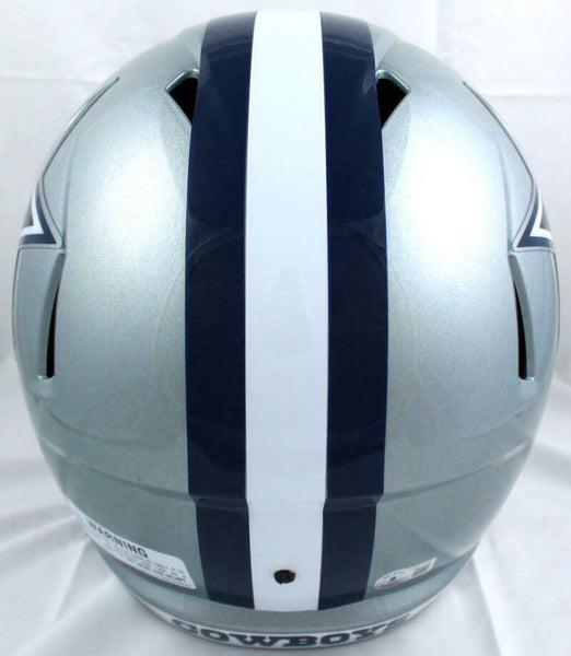 Roger Staubach Autographed Dallas Cowboys F/S Speed Helmet w/SB MVP,HOF- Beckett W Hologram *Black This is a hand autographed Helmet of Roger Staubach of the Dallas Cowboys. This is a Riddell Football Full Size Speed Replica Helmet. Inscribed SB MVP, HOF. This item has a Beckett Witness Authentication, which comes with a Beckett numbered hologram and a QR code for verification. You can view this item on the Beckett Authentication website and it shows when and where the item was signed. It was signed either at a public autograph appearance or a Private Signing. This is a stock photo of the item. Although you may not receive this exact item, the item you receive is virtually identical and brand new in great shape.