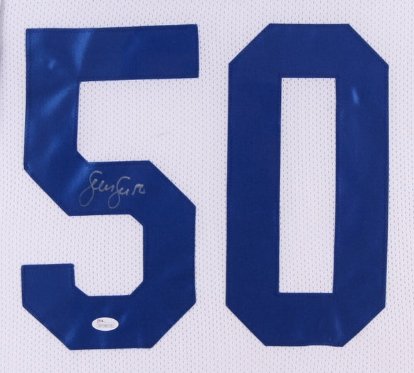 Custom frame measures approximately 35" x 43" in size and features a jersey which has been hand-signed in silver paint pen by Sean Lee.The autograph includes an official James Spence Authentication (JSA) hologram and matching COA for authenticity purposes. The signing of this item was witnessed by JSA.Authentication: JSA COA