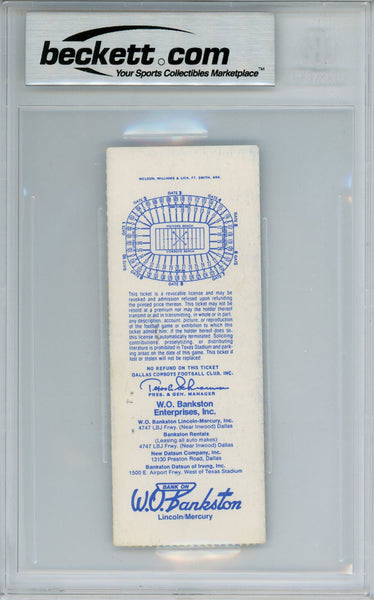 Tony Dorsett Autographed/Signed 10/9/1983 vs Bucs Ticket Beckett Slab 39185 The number in the listing title is just an inventory sku for our records and is not the authentication number. This is the exact item that you will receive so please see scans for condition. This is a official ticket that was personally autographed by Tony Dorsett. This has been professionally slabbed by Beckett Authentication Services and includes a certificate of authenticity from Denver Autographs.