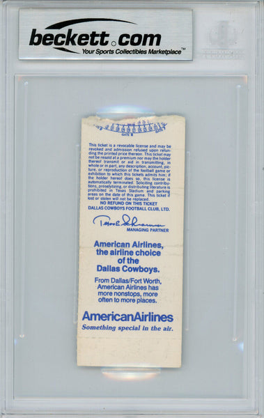 Tony Dorsett Autographed/Signed 11/9/1986 Ticket Beckett Slab 39179 The number in the listing title is just an inventory sku for our records and is not the authentication number. This is the exact item that you will receive so please see scans for condition. This is a official ticket that was personally autographed by Tony Dorsett. This has been professionally slabbed by Beckett Authentication Services and includes a certificate of authenticity from Denver Autographs.
