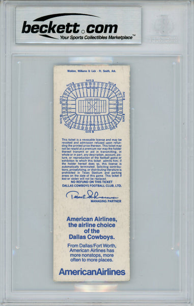 Tony Dorsett Autographed/Signed 12/9/1984 vs Redskins Ticket Beckett Slab 39191 The number in the listing title is just an inventory sku for our records and is not the authentication number. This is the exact item that you will receive so please see scans for condition. This is a official ticket that was personally autographed by Tony Dorsett. This has been professionally slabbed by Beckett Authentication Services and includes a certificate of authenticity from Denver Autographs.