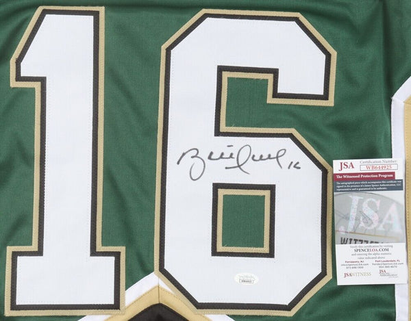This autographed custom on-ice adult XL jersey has been personally hand-signed by Brett Hull of the Dallas Stars. This autograph is certified by James Spence Authentication (JSA). It comes with the numbered hologram and matching Certificate of Authenticity. The signing was witnessed by JSA Custom on-ice style jerseys are a more affordable option for autograph seekers. These jerseys do not have any brand name or tags and are made in the Philippines. They feature stitched on names and numbers and are made to look very similar to the on-field jerseys that the players wear. These custom jerseys are very commonly used in the memorabilia industry.