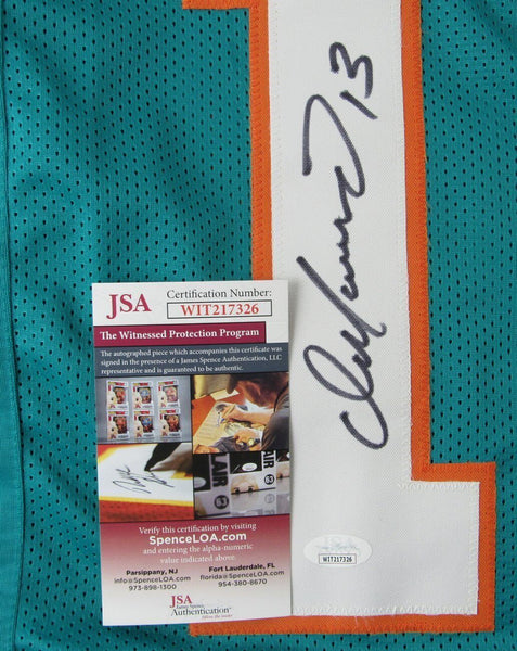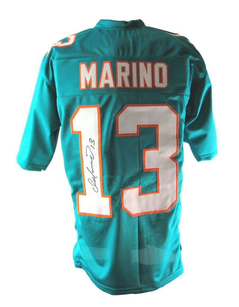 Dan Marino HOF Signed/Autographed Miami Dolphins Teal Custom Football Jersey Size XL. This jersey is authenticated by JSA and includes their Tamper-proof Sticker and Certificate of Authenticity.