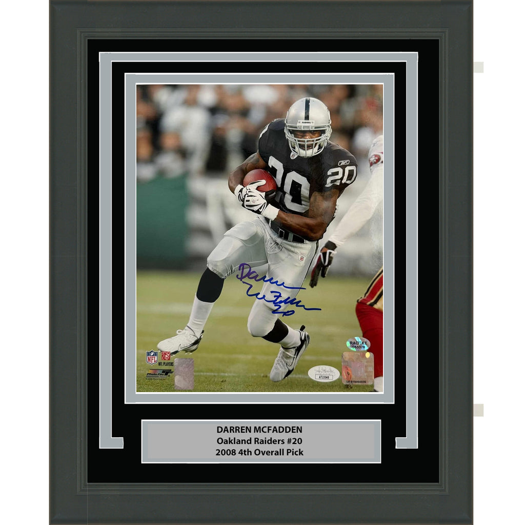 Framed Autographed/Signed Darren McFadden Oakland Raiders 8x10 Photo JSA COA #2 The item is professionally framed & matted and is ready to be hung in your man cave! Nameplate and matting requests can be made.