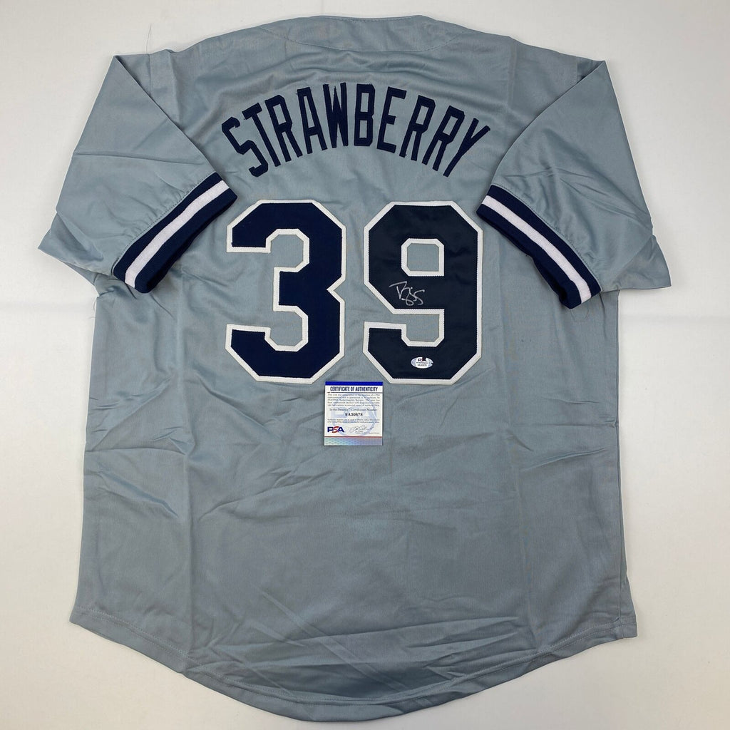 Autographed/Signed Darryl Strawberry New York Grey Baseball Jersey PSA/DNA COA Jersey has no brand names or logos. This is a custom jersey and was not manufactured by or in any manner associated with any professional sports league or manufacturer. This custom jersey carries no professional sports league designation. The item is intended to be an autographed collectible. The custom jersey displays the name and number of the player. This item in no way is affiliated with or connected to any professional sports organization. Size is XL.