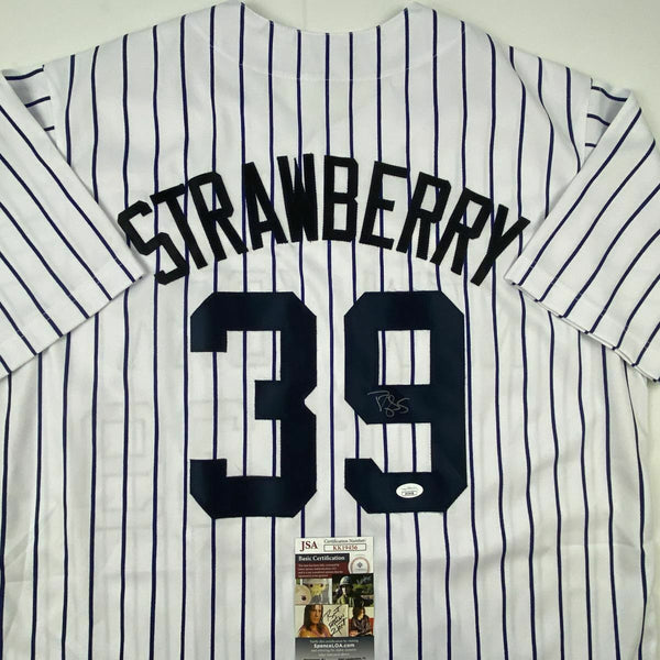 Autographed/Signed DARRYL STRAWBERRY New York Pinstripe Baseball Jersey JSA COA This is a custom jersey and was not manufactured by or in any manner associated with any professional sports league or manufacturer. This custom jersey carries no professional sports league designation. The item is intended to be an autographed collectible. Reference of team in the title is to allow the purchaser a point of association. The custom jersey displays the name, number and authenticated signature of the player. This item in no way is affiliated with or connected to any professional sports organization. The autograph, as always is guaranteed to be authentic and has been certified as authentic by a third-party, trusted authenticator. Size is XL unless otherwise noted.