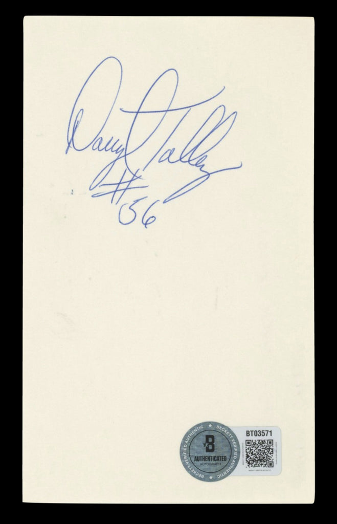 This Autographed 3x5 Index Card with the inscription of "#56" has been Personally Signed by Darryl Talley of the Buffalo Bills. This item is 100% Authentic to include a hologram by Beckett Authentication Services. This item will come with an affixed Beckett Authentication Services (BAS) authentication sticker, which includes a scannable QR code to verify authenticity. Please note that Beckett no longer provides serial-numbered COA cards, and the attached BAS sticker will serve as the complete authentication for this item. The authenticity can be verified on Beckett Authentication Services website.