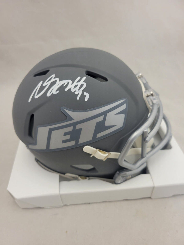 DAVANTE ADAMS AUTOGRAPHED / SIGNED NEW YORK JETS SLATE SPEED MINI HELMET WITH BECKETT QR COA