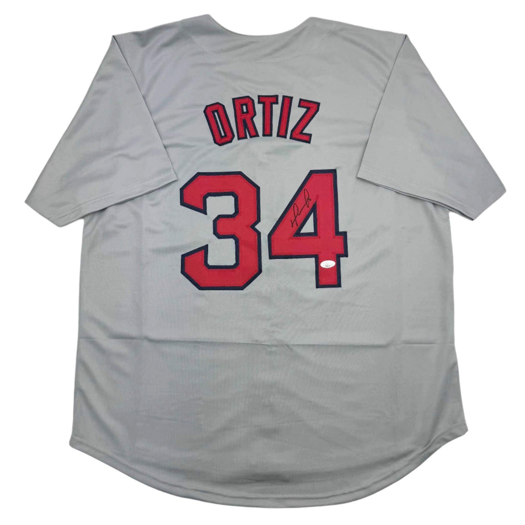 Autographed/Signed David Ortiz Boston Grey Baseball Jersey JSA COA Jersey has no brand names or logos. This is a custom jersey and was not manufactured by or in any manner associated with any professional sports league or manufacturer. This custom jersey carries no professional sports league designation. The item is intended to be an autographed collectible. The custom jersey displays the name and number of the player. This item in no way is affiliated with or connected to any professional sports organization. Size is XL.