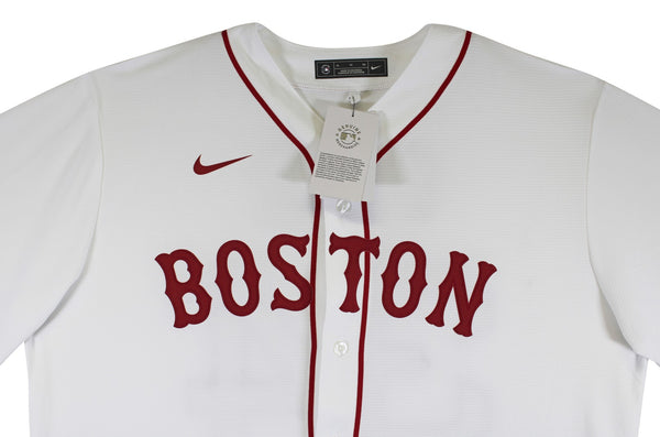 This Autographed White Nike Jersey has been Personally Signed by David Ortiz of the Boston Red Sox. This item is 100% Authentic to include a hologram by Beckett Authentication Services. This item will come with an affixed Beckett Authentication Services (BAS) authentication sticker, which includes a scannable QR code to verify authenticity. Please note that Beckett no longer provides serial-numbered COA cards, and the attached BAS sticker will serve as the complete authentication for this item. This is a BAS Witnessed Protection Program item which means a Beckett Authentication Service representative was present when this item was being signed. We conducted an autograph signing with David Ortiz where multiples of the same item were signed. While the photographs are representative of this item, the size, placement and strength of the signature may vary. Each item is hand signed, therefore, each autograph is unique. This item can be verified through BAS Witnessed. This is a X-Large sized Jersey.