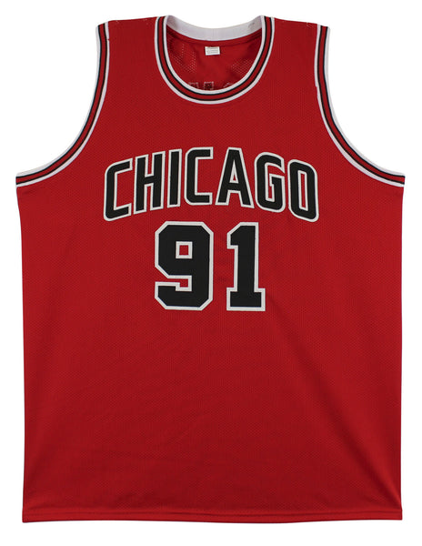 This Autographed Red Pro Style Jersey has been Personally Signed by Dennis Rodman of the Chicago Bulls. This item is 100% Authentic to include a hologram by Beckett Authentication Services. This item will come with an affixed Beckett Authentication Services (BAS) authentication sticker, which includes a scannable QR code to verify authenticity. Please note that Beckett no longer provides serial-numbered COA cards, and the attached BAS sticker will serve as the complete authentication for this item. This is a BAS Witnessed Protection Program item which means a Beckett Authentication Service representative was present when this item was being signed. We conducted an autograph signing with Dennis Rodman where multiples of the same item were signed. While the photographs are representative of this item, the size, placement and strength of the signature may vary. Each item is hand signed, therefore, each autograph is unique. This item can be verified through BAS Witnessed. This is a X-Large sized, non-branded, custom-stitched Jersey.